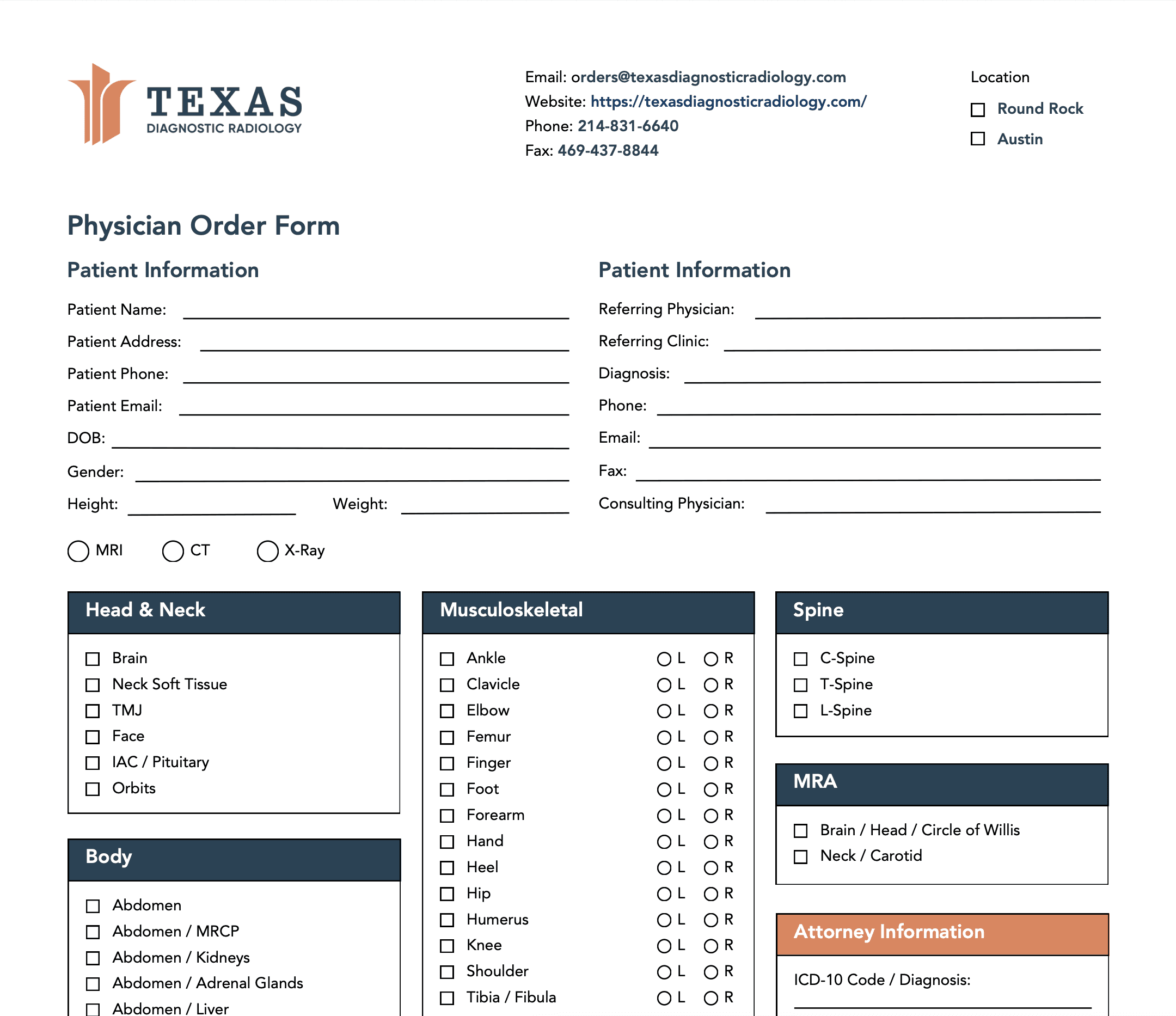 Fill out this form to send us an imaging order for imaging centers in Houston.